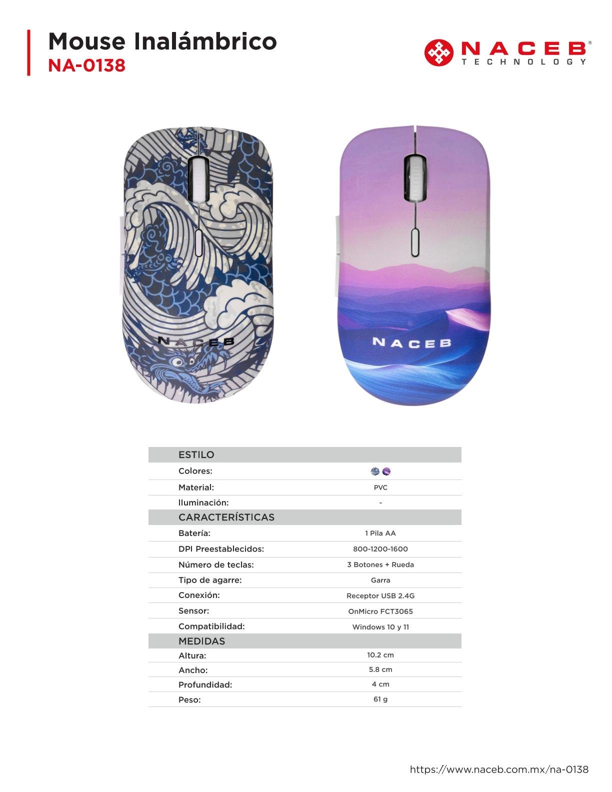Mouse Naceb NA-0138A – Inalámbrico Nano USB, Óptico, 1600DPI, RF Inalámbrico, 3 Botones, 1 Pila AA, Azul