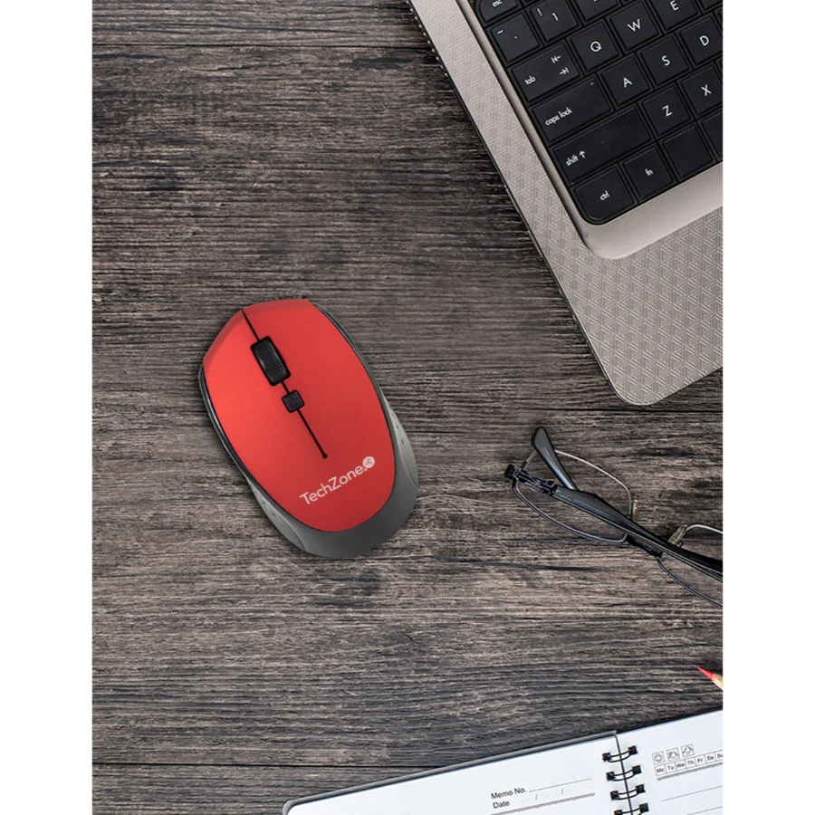 Mouse Óptico TECHZONE TZ19MOU01-INAR / Inalámbrico / Receptor USB / 4 Botones / 800, 1200, 1600 DPI Ajustables / Compatible Con Windows Y MacOS / Color Rojo