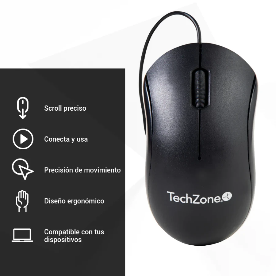 Sé el primero en valorar “Mouse TECHZONE / Alambrico / USB / 1000 DPI / 3 botones / Negro / TZMOU01”