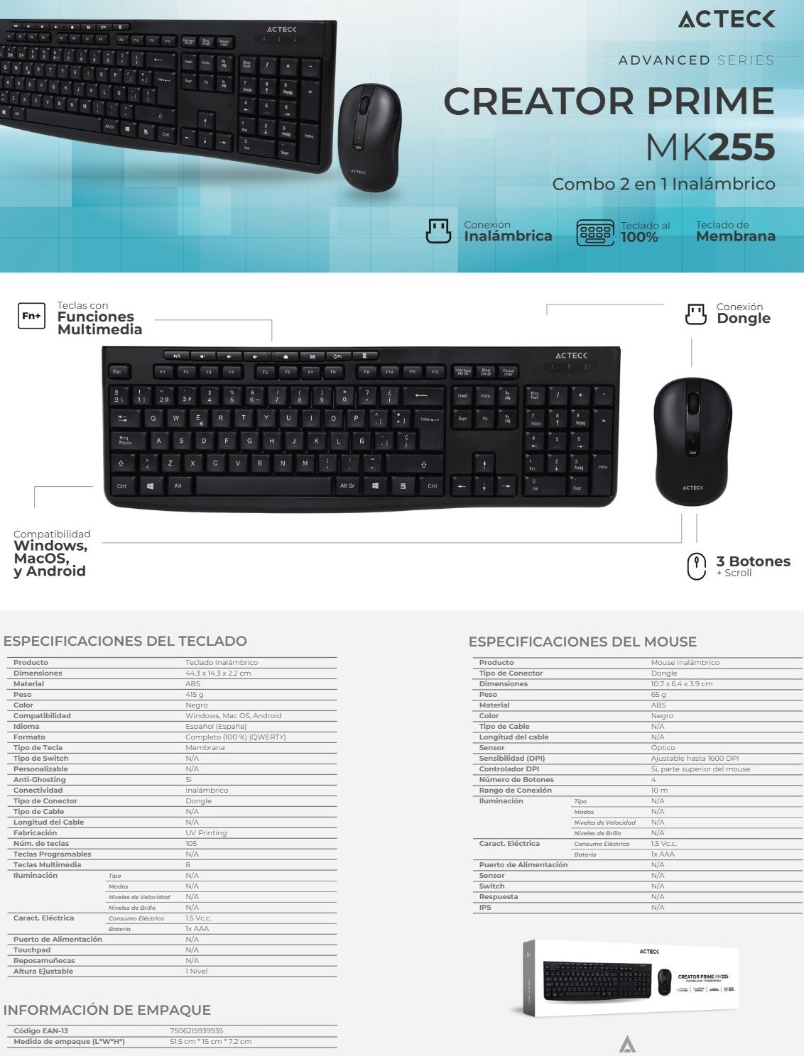 Kit De Teclado Y Mouse ACTECK Creator Prime MK225