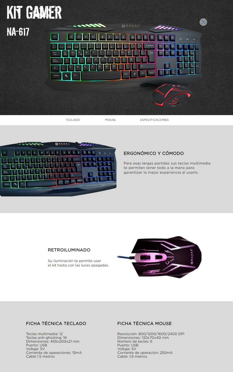 Kit De Teclado Y Mouse GAMER Na-617 Naceb Technology / Usb / Teclado Numerico / Led / Color Negro