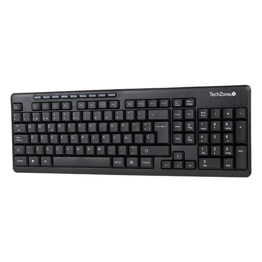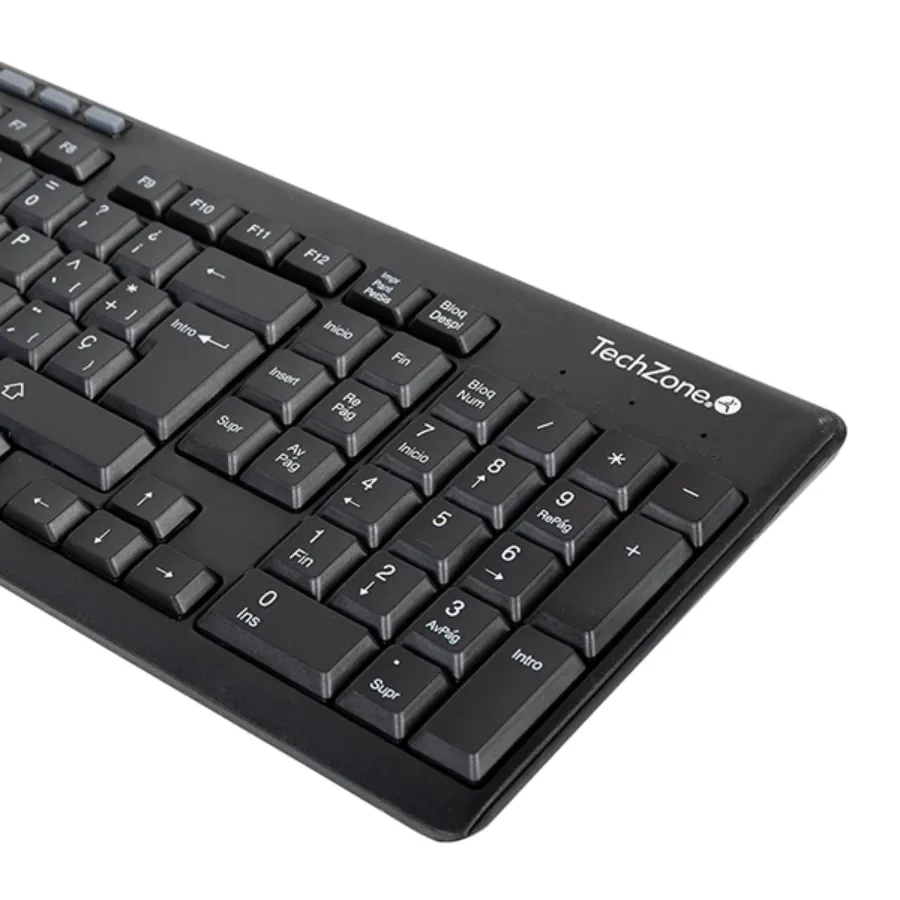 Kit De Teclado Y Mouse Techzone TZ16COMB01-INA / Inalámbrico / Español / 10M / 1000 DPI / 3 Botones / Nano USB / Negro / TZ16COMB01-INA