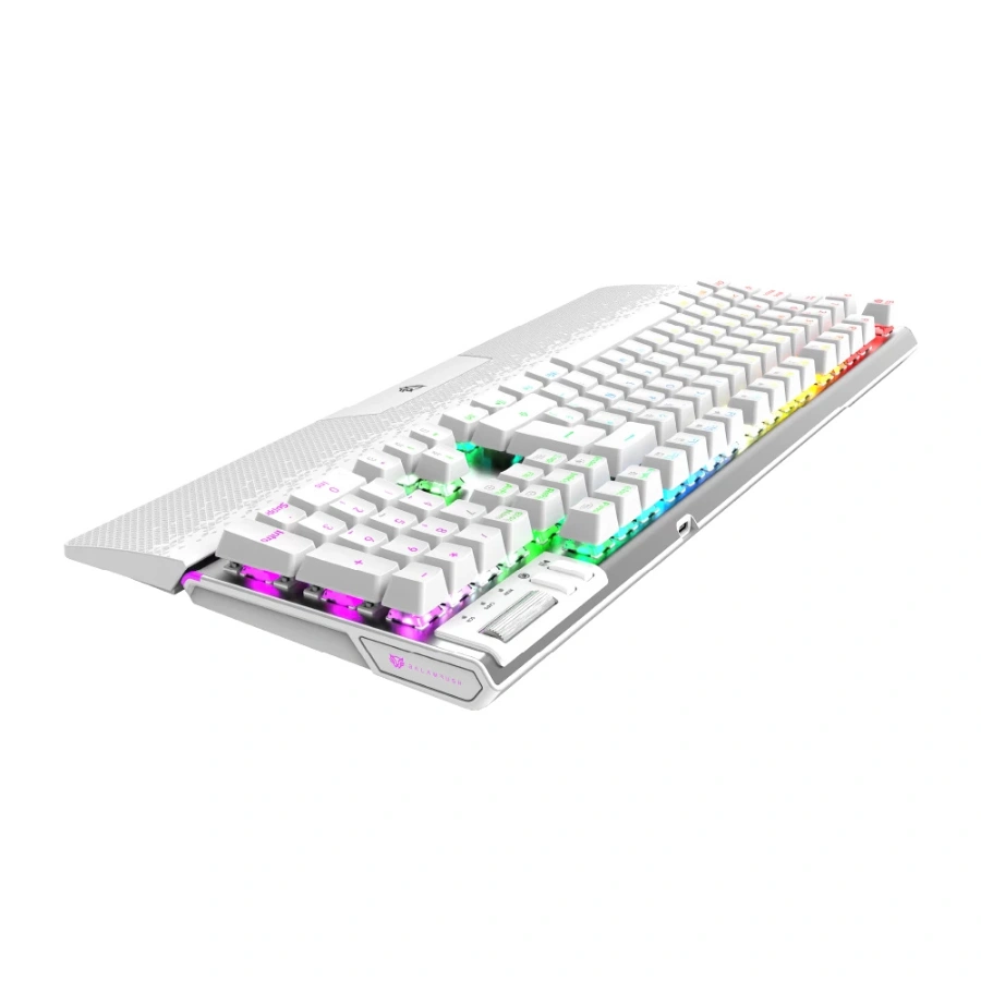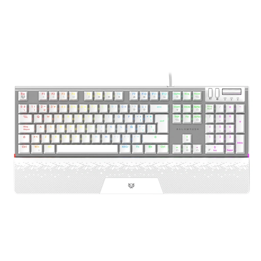 Teclado Gamer BALAM RUSH DOMINATE EXPERT GK979 RGB / Mecánico / Alámbrico / USB 3.0 – Tipo C / Cable 1.8 M Trenzado / Anti-Ghosting / Switch Rojo Outemu / Español / Blanco