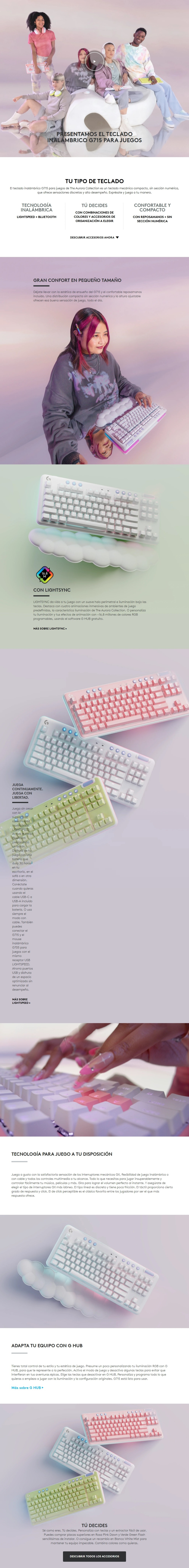 De The Aurora Collection, el G715 es un teclado inalámbrico LIGHTSPEED y Bluetooth® para juegos diseñado para ofrecer confort con el mullido reposamanos incluido. Totalmente equipado con iluminación RGB y los interruptores mecánicos GX que tú elijas. Disponible en Blanco White Mist. Accesorios de combinación de colores a la venta por separado.