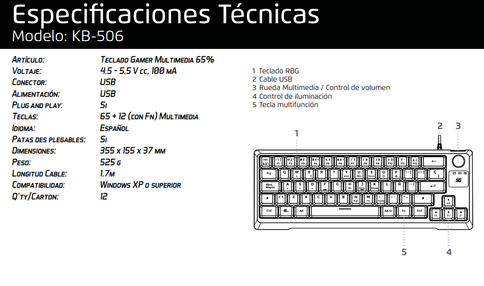 El KB-506 es un teclado 65%, que además de ser compacto y eficiente, se adaptará perfectamente a tu setup con su increíble iluminación RGB regulable. Sólo conéctalo al puerto USB de tu computadora y comienza a utilizarlo.