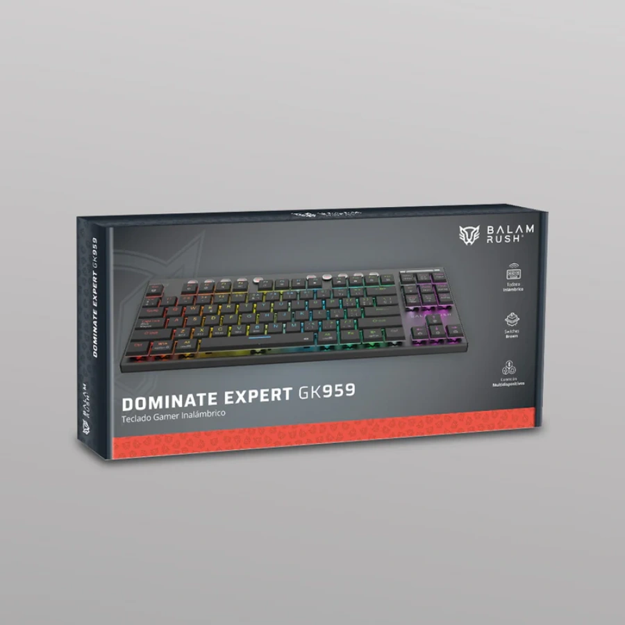 Teclado Mecánico BALAM RUSH DOMINATE EXPERT GK959 – Inalámbrico, Bluetooth, Switch Brown, RGB, Windows, Mac, Android – Negro