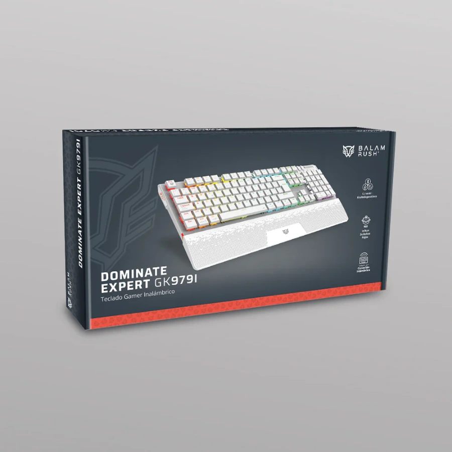 Teclado Mecánico Balam Rush Dominate Expert GK979I – Inalámbrico Y Alámbrico, Switch Red, 105 Teclas, RGB, Con Impresión Al Español, Blanco