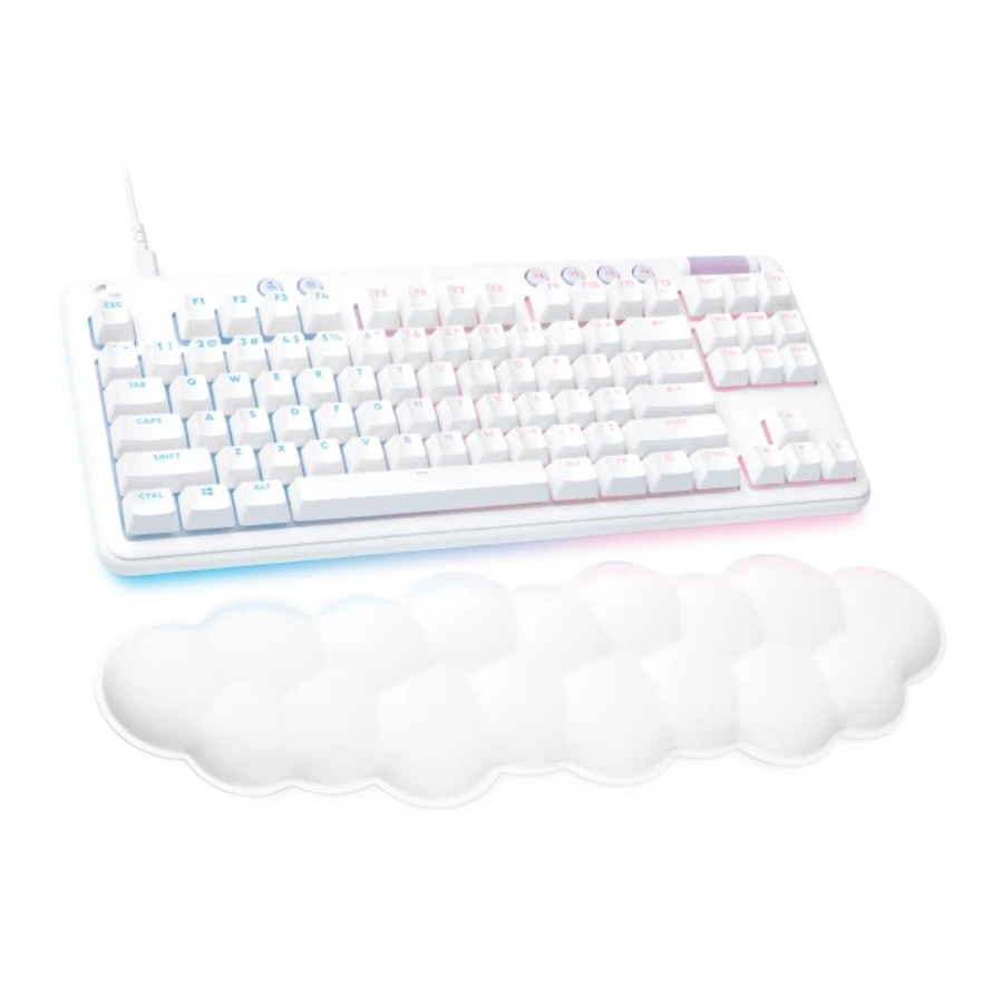 De The Aurora Collection, el G713 es un teclado con cable, compacto, sin sección numérica, diseñado para ofrecer confort con el mullido reposamanos incluido. Totalmente equipado con etérea iluminación RGB y los interruptores mecánicos GX que tú elijas. Disponible en Blanco White Mist. Accesorios de combinación de colores a la venta por separado.