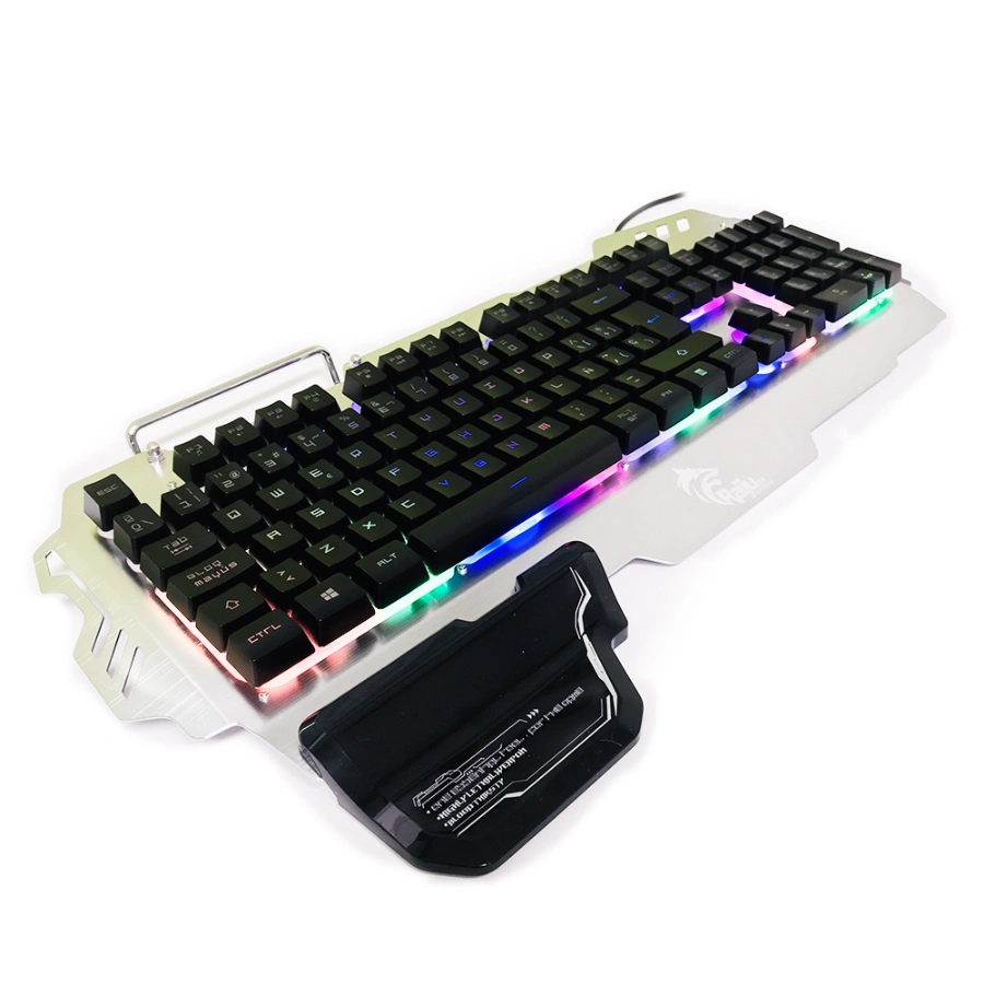 Teclado Mecánico RAIJU KD01 GAMING E SPORTS RGB / Con Soporte De Teléfono / Alámbrico / USB / Cable 1.6m / Negro