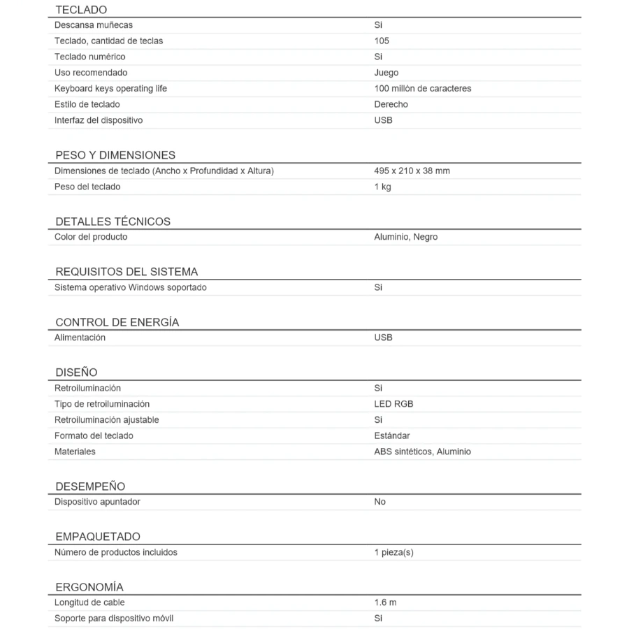 • Tipo de retroiluminación: LED RGB
