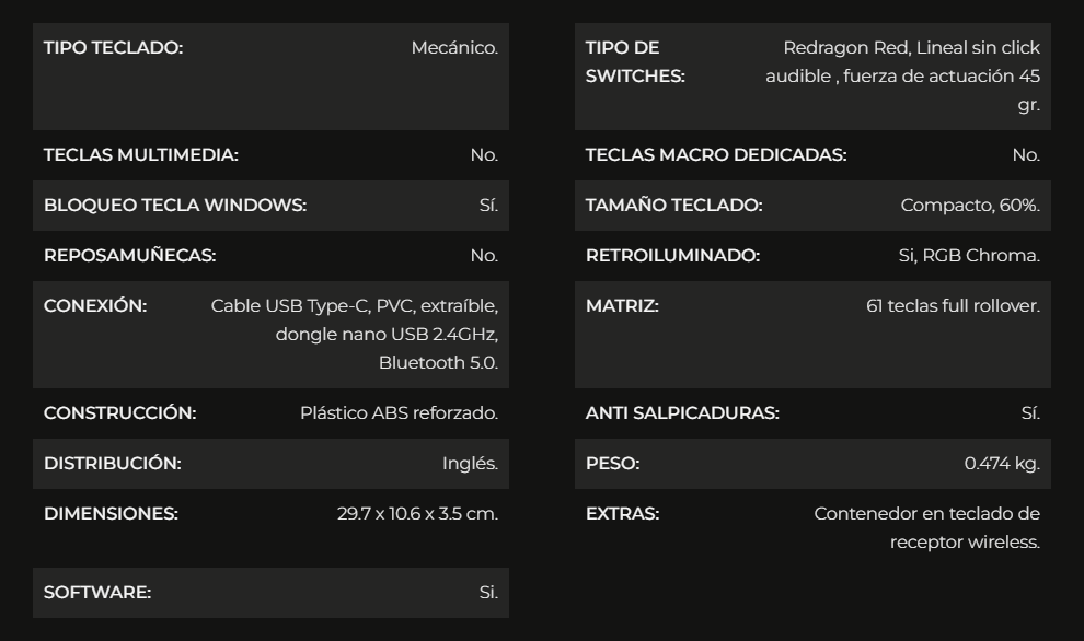 El K616-RGB FIZZ PRO te asegurará una respuesta ultrarrápida de 1 ms en modo inalámbrico de 2,4 GHz, 0 latencia y 0 input lag. Además, permite conexión a través de Bluetooth 5.0 con una velocidad de transmisión de hasta 2 Mbps, manteniendo siempre al mínimo las pérdidas.