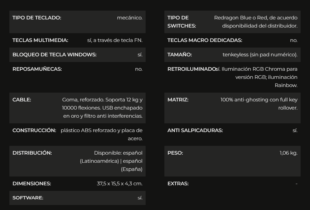 Teclado Mecánico REDRAGON Kumara K552 Rgb / Alámbrico / USB / Switch Red / Español / Anti-ghosting / Negro / K552RGB-1R-SP
