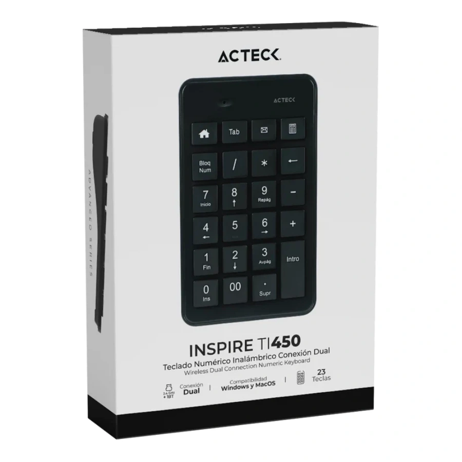 Teclado Numérico ACTECK INSPIRE TI450 / Inalámbrico / Indicador LED / USB / Membrana / 23 Teclas / Color Negro
