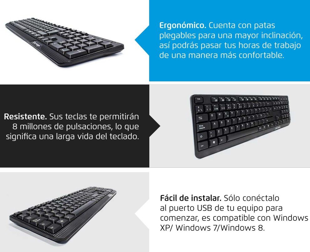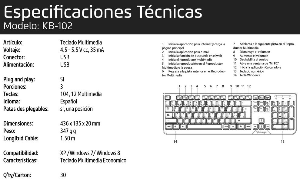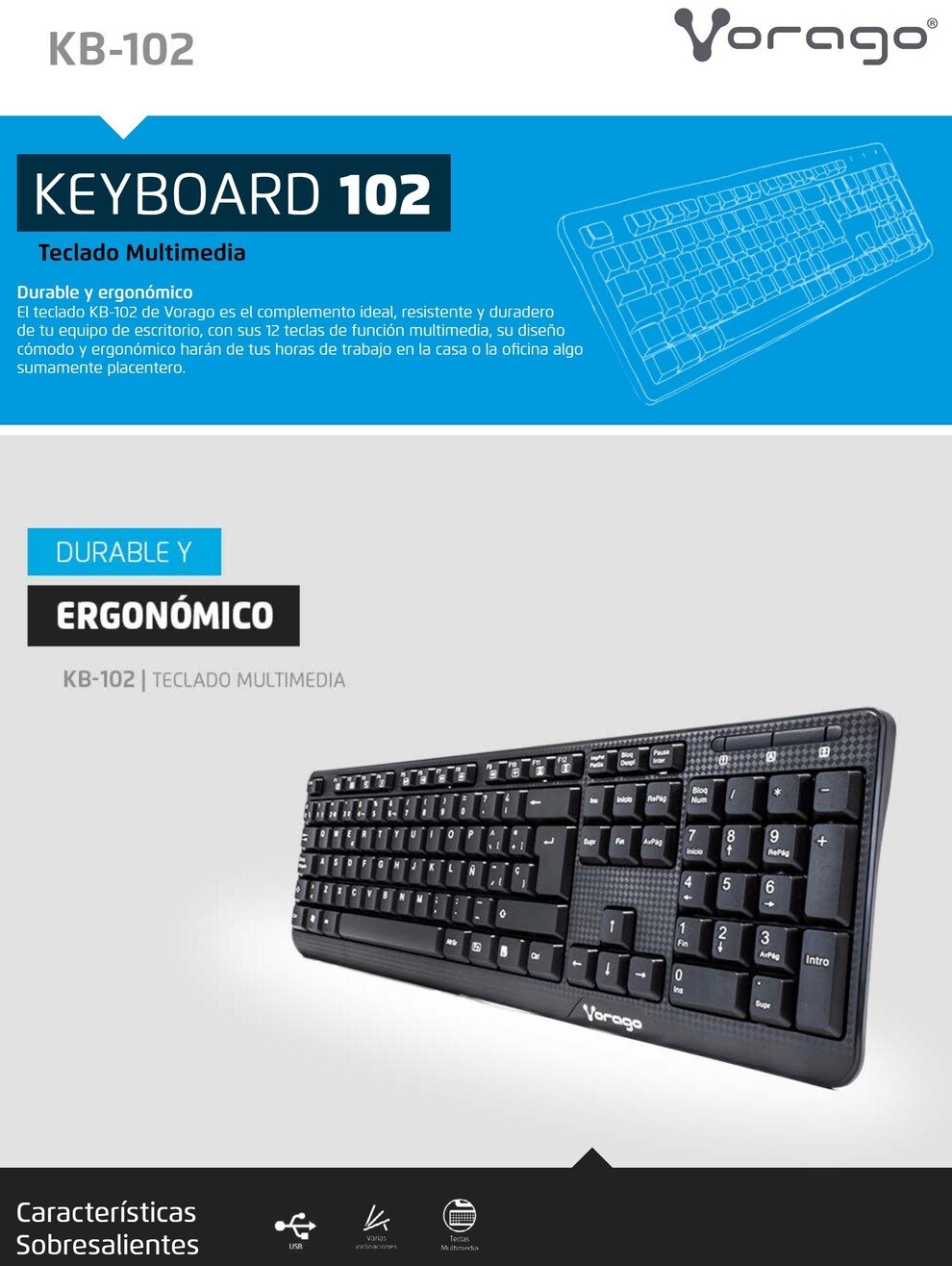 El teclado KB-102 de Vorago es el complemento ideal, resistente y duradero de tu equipo de escritorio, con sus 12 teclas de función multimedia, su diseño cómodo y ergonómico harán de tus horas de trabajo en la casa o la oficina algo sumamente placentero.