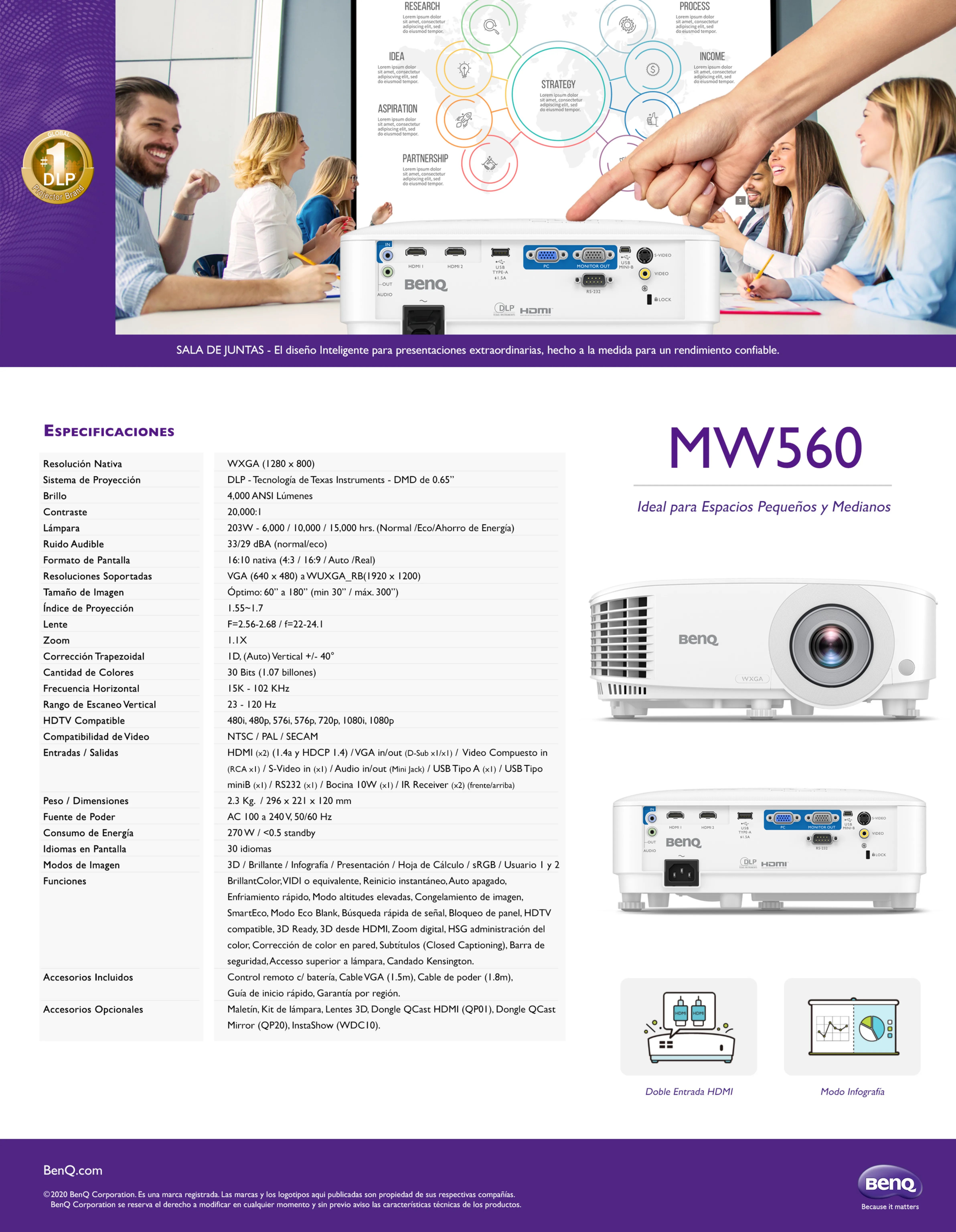 • Tecnología de proyección: DLP