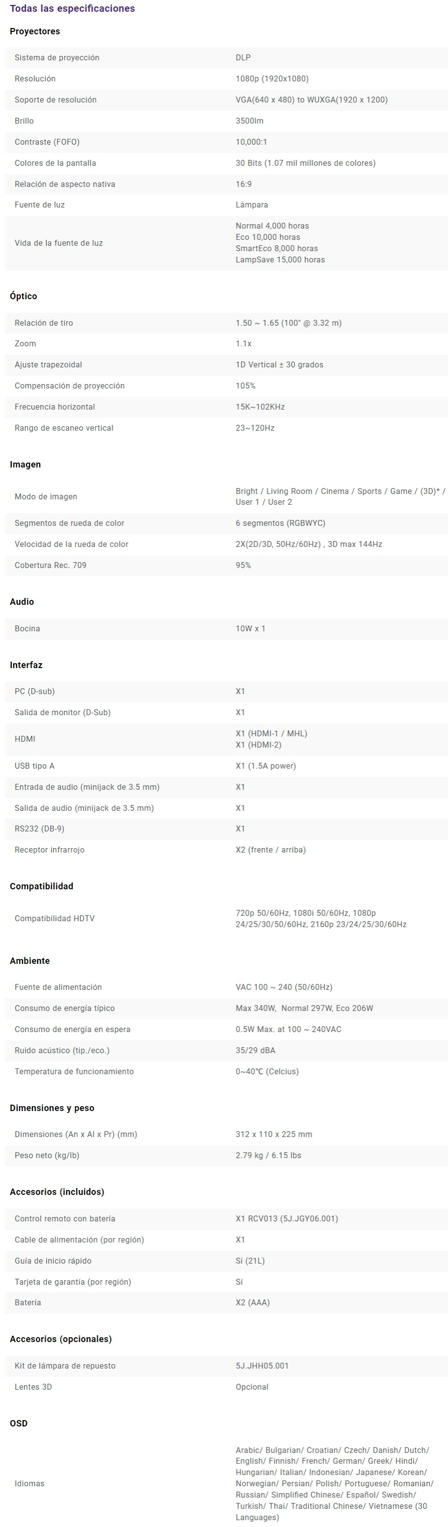 Proyector BenQ Th585 9H.JLS77.13L/14L