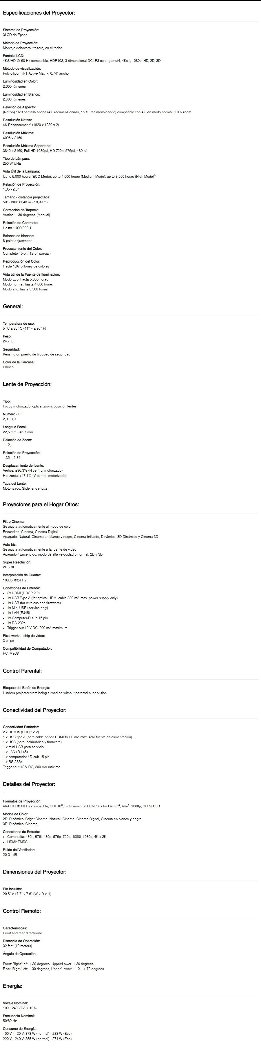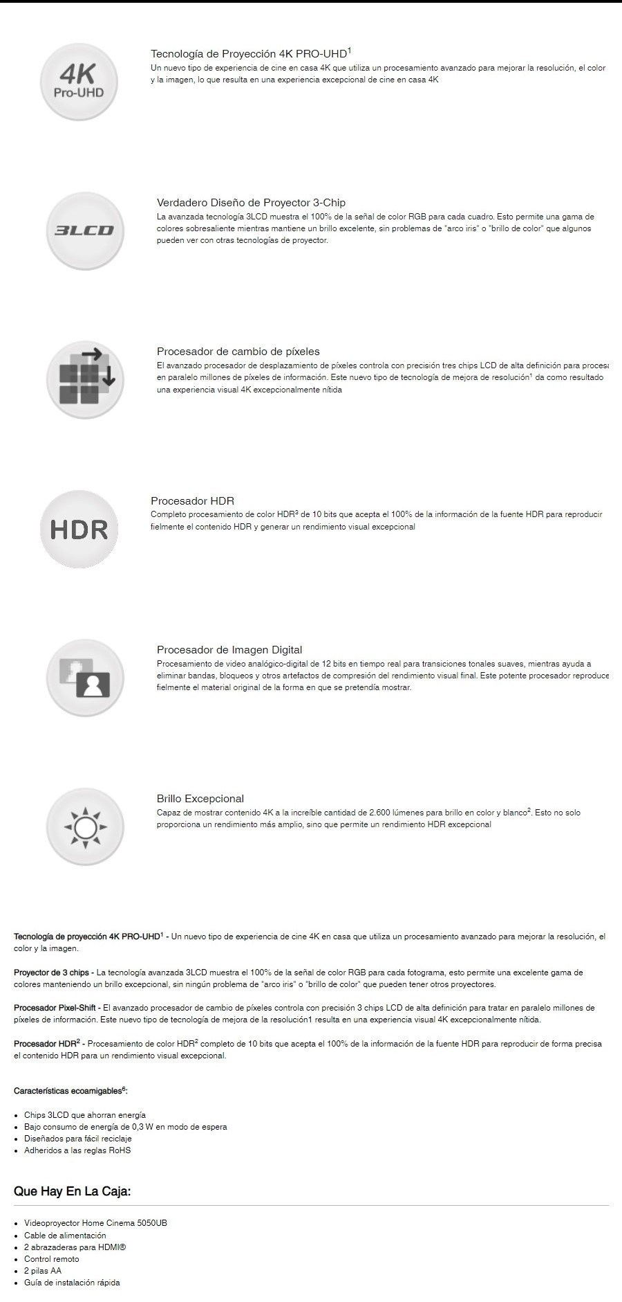 • Tecnología de proyección 4K PRO-UHD1