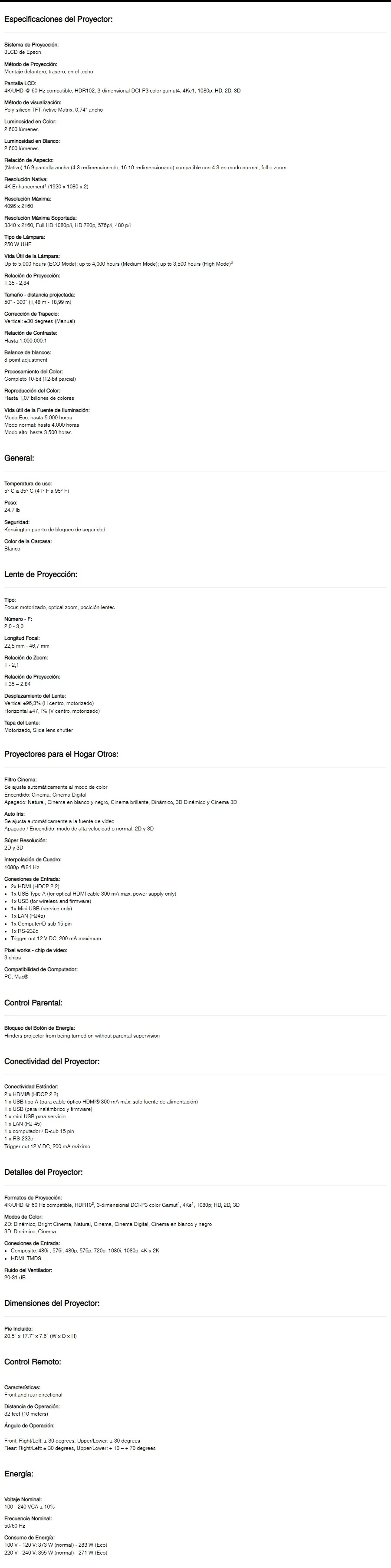 • Tecnología de proyección 4K PRO-UHD1