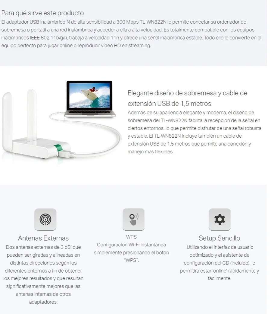 Adaptador Antena Wifi Tp-Link TL-WN822N