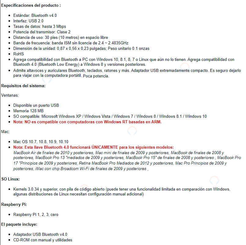 Microadaptador USB Bluetooth Smart Ready que está diseñado para ser totalmente compatible con el estándar Bluetooth v4.0.