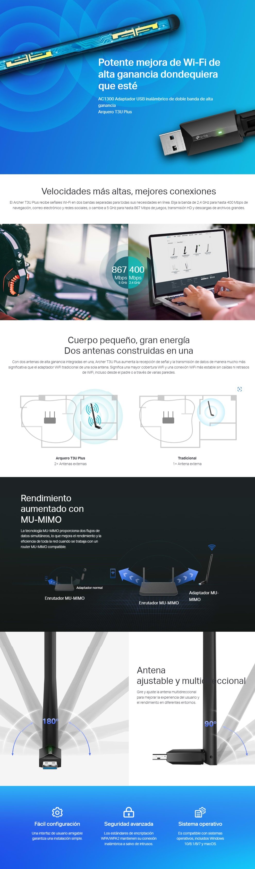 Sé el primero en valorar “Adaptador USB TP-LINK Archer T3U Plus / WIFI De Doble Banda AC1300 / 2.4GHz, 5GHz / 400Mbps, 867Mbps / Color Negro”