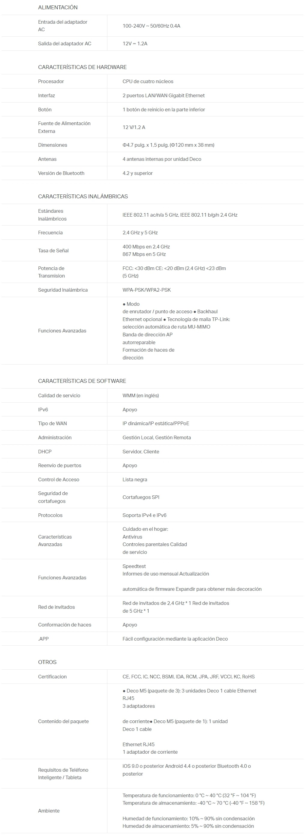 Sé el primero en valorar “Kit De Sistema Wifi Mesh TP-LINK 3 Deco M5 AC1300 / Doble Banda 2.4 GHz, 5GHz / 2 Puertos Gigabit Wan-lan / 4 Antenas Int / Bluetooth 4.2 / Blanco”