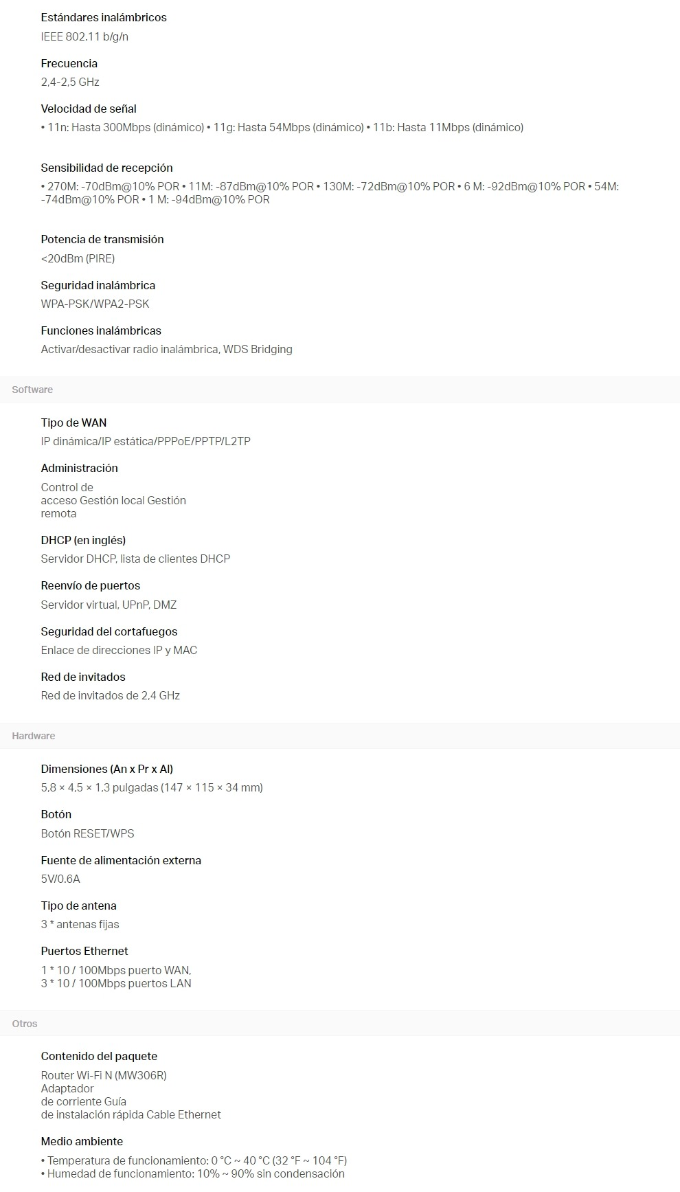 • Wi-Fi estable para su uso diario: MW306R proporciona conexiones rápidas y estables para satisfacer todas sus necesidades de red con velocidades de hasta 300 Mbps