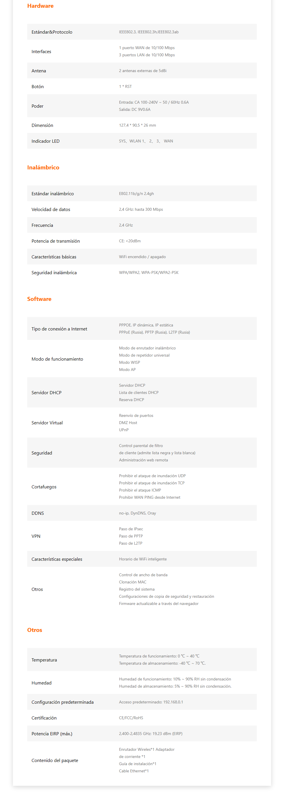 Router Tenda N301 / Inalámbrico / 3 Puertos Rj45 / 300MBPS / 10,100 Mbit/S