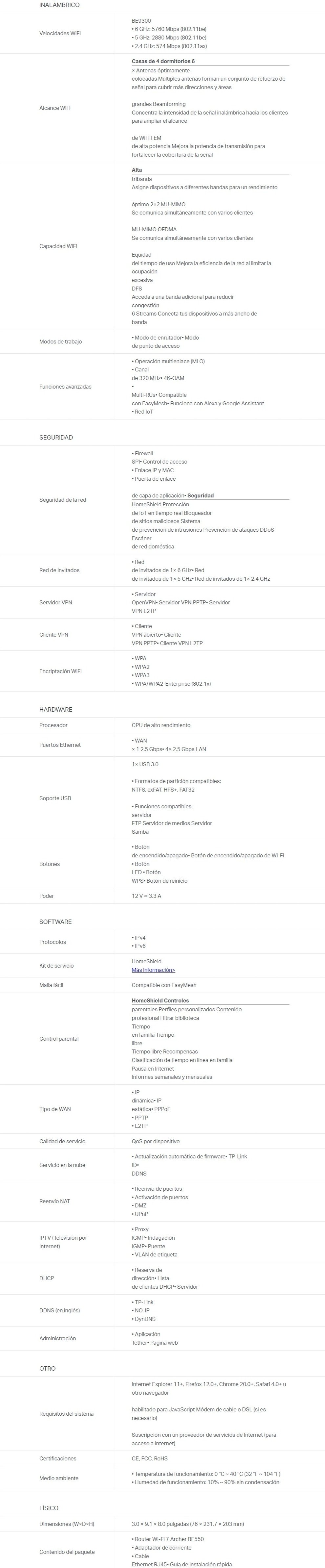 Ruteador Inalámbrico TP-LINK Archer BE550
