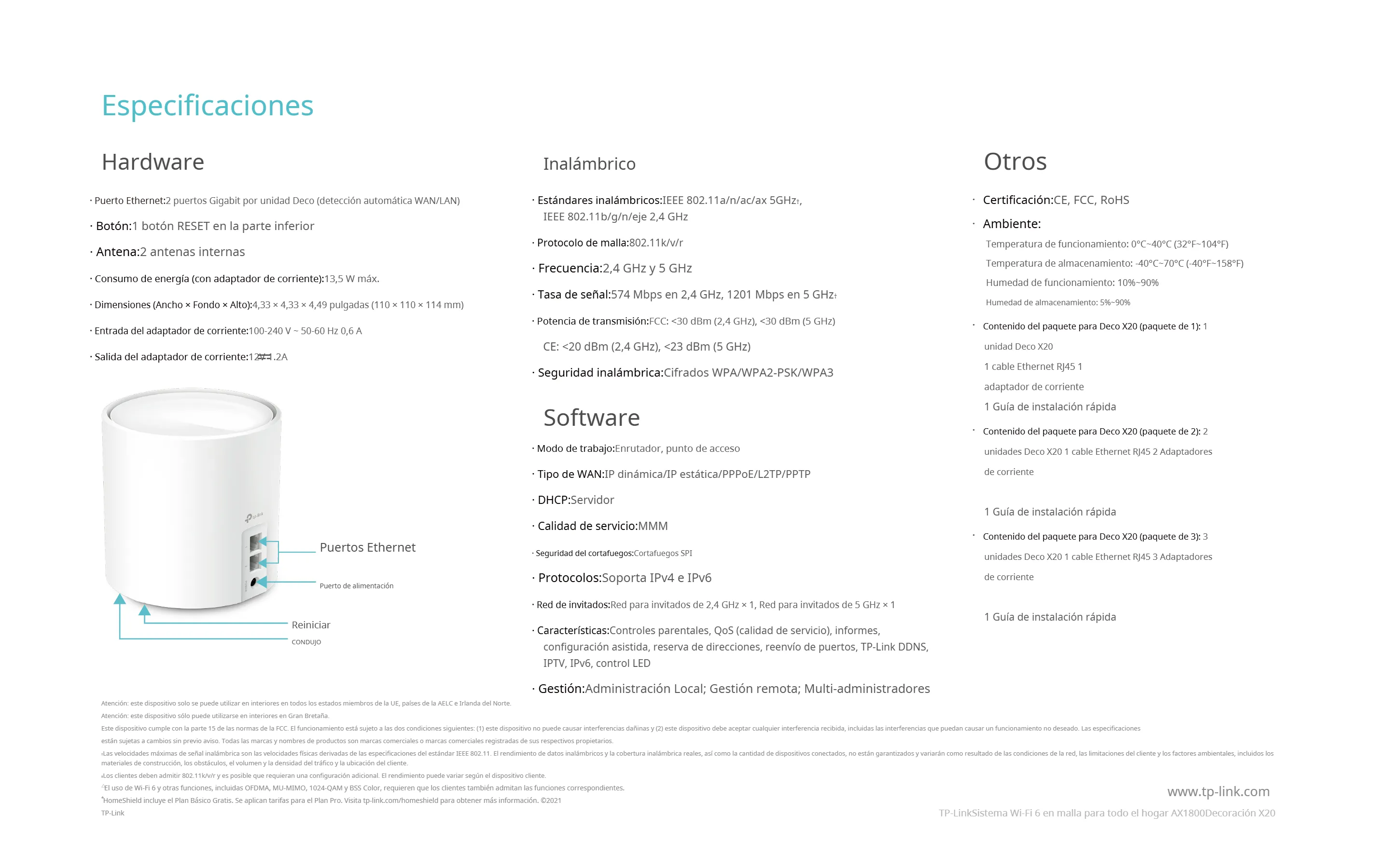 Sistema Mesh TP-LINK DECO X20 / Wi-Fi 6 Doble Banda AX1800 / 2.4GHz, 5GHz / Enrutador, Access Point / X2 Puertos Ethernet / X2 Antenas Internas / 2 Piezas