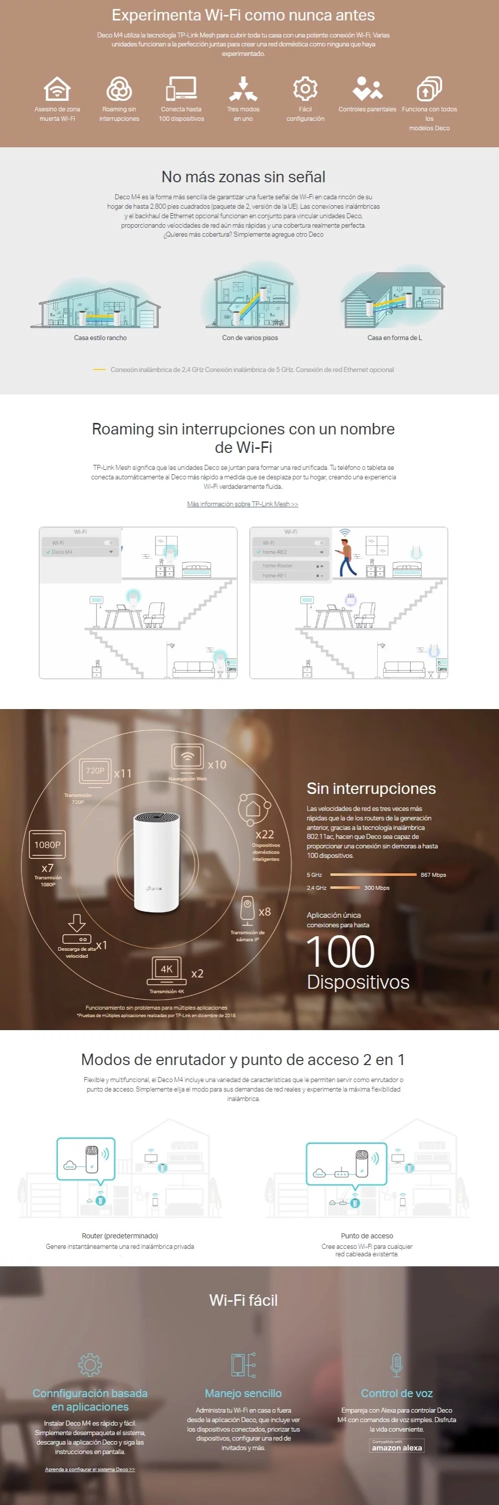 • Deco utiliza un sistema de torres para lograr una cobertura de Wi-Fi sin interrupciones en todo el hogar: ¡elimine las áreas de señal débil de una vez por todas!