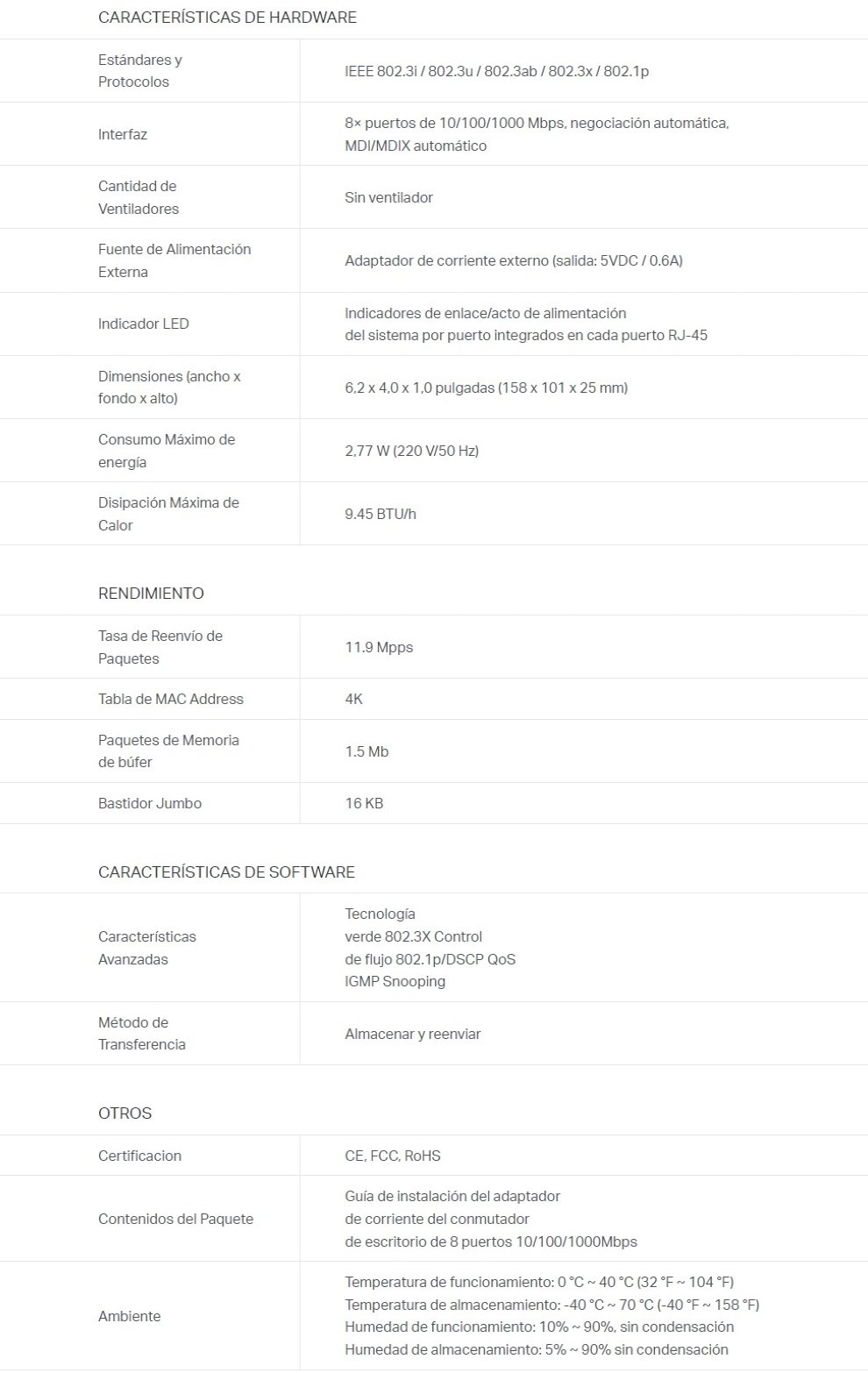 Sé el primero en valorar “Switch TP-LINK TL-SG108 / 8 Puertos RJ45 10/100/1000Mbps / No Administrable / Reenvió De Paquetes 11.9 / Para Escritorio / Gris”