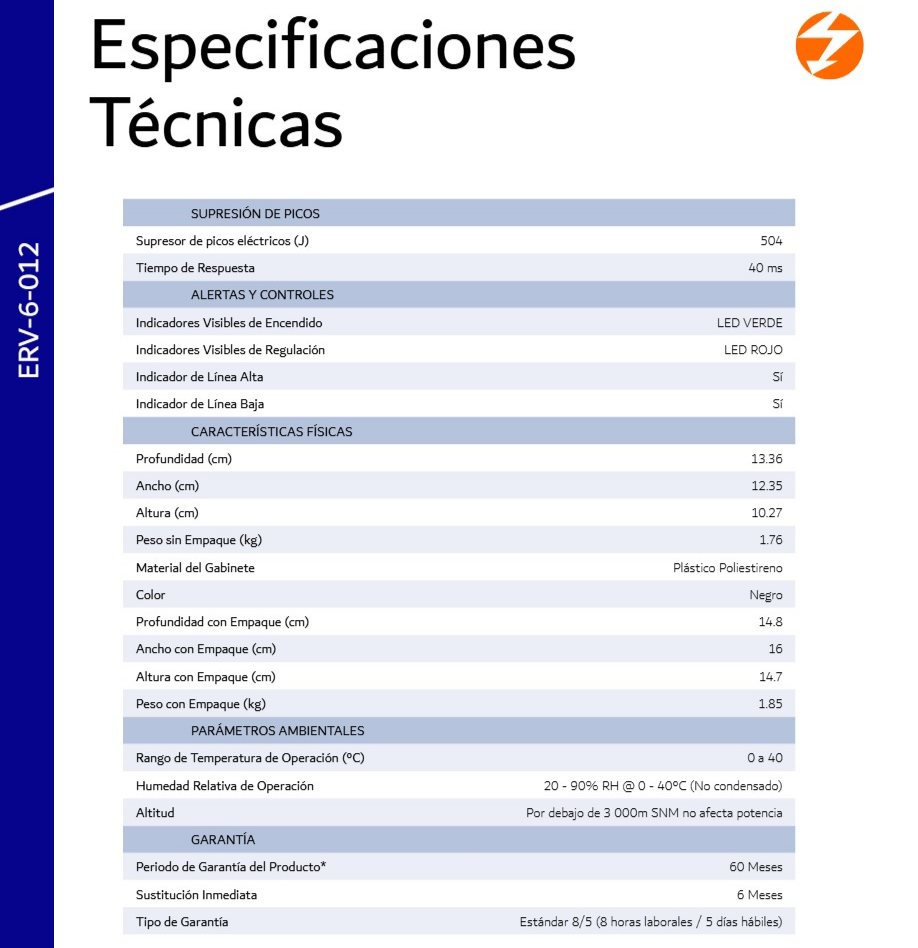 Sé el primero en valorar “Regulador COMPLET ERV-6-012 – 1000W, 2000 Va, Con Supresor De Picos, 8 Contactos – Negro”