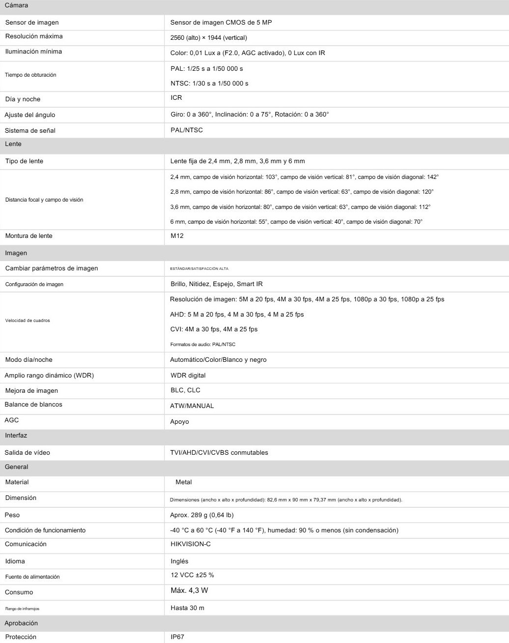 SKU: DS-2CE76H0T-ITMF(C) Categoría: