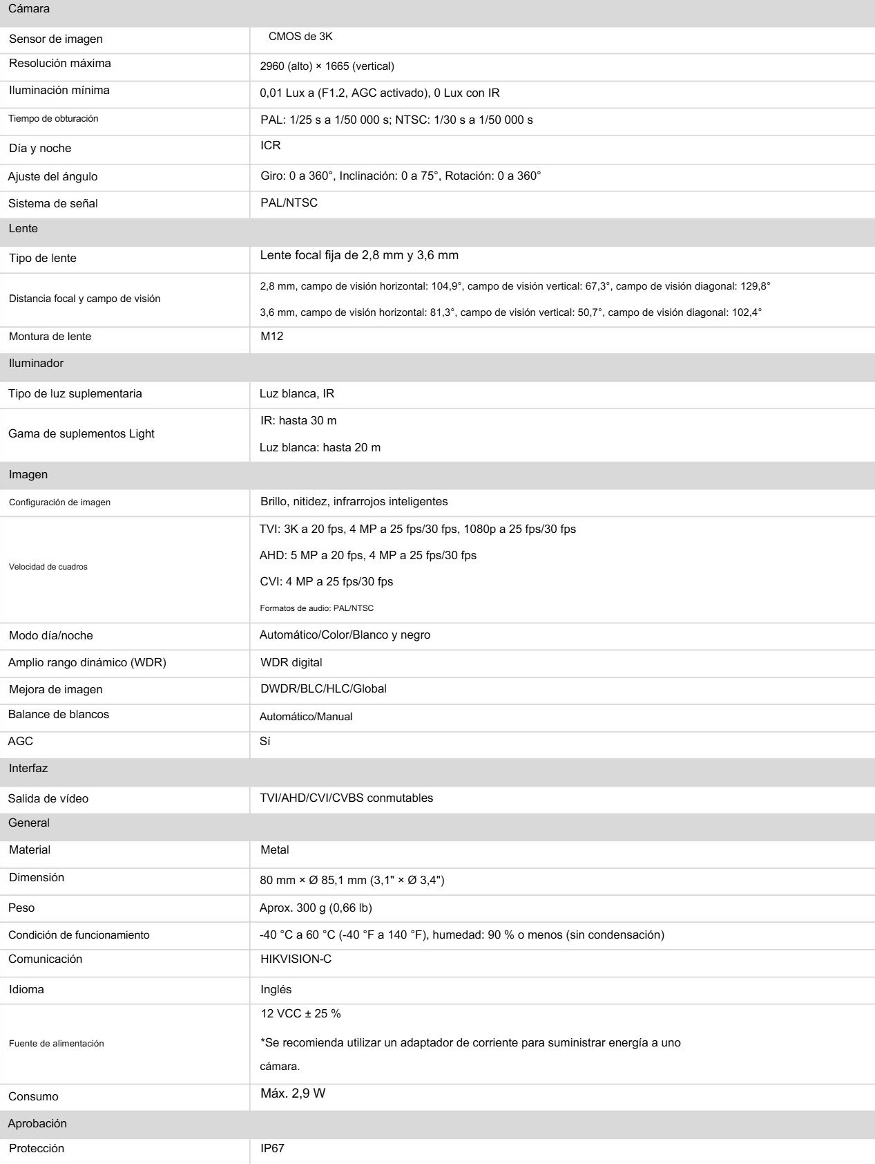 • Lente focal fija de 2,8 mm y 3,6 mm