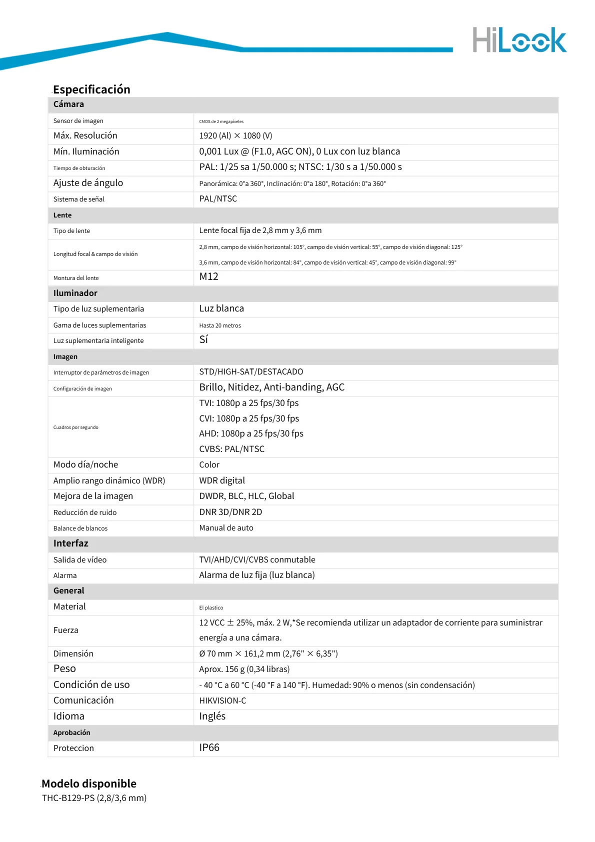Cámara De Vigilancia HIKVISION HiLook THC-B129-PS