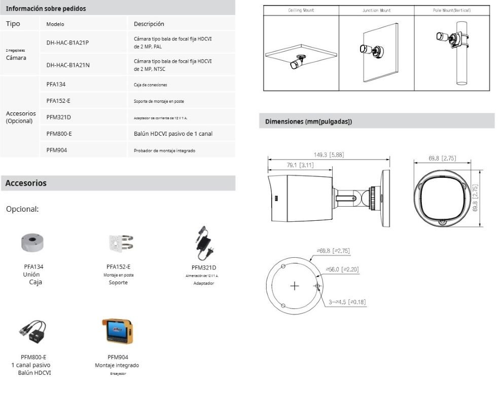 • Salida de video: 1 salida BNC (CVI/TVI/AHD/CVBS)