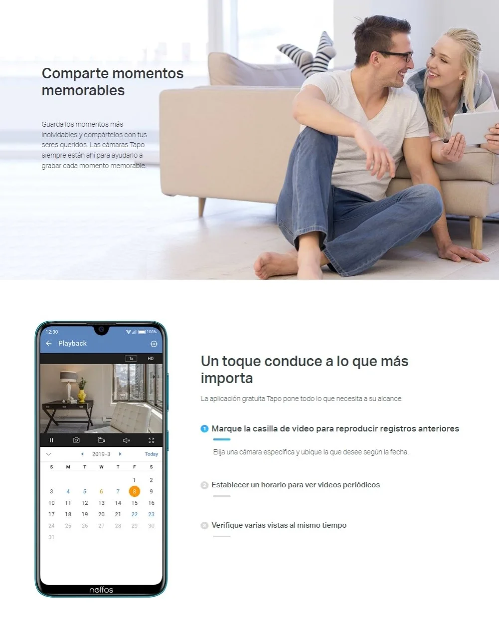 • Detección de movimiento y notificaciones: le notifica cuando la cámara detecta movimiento
