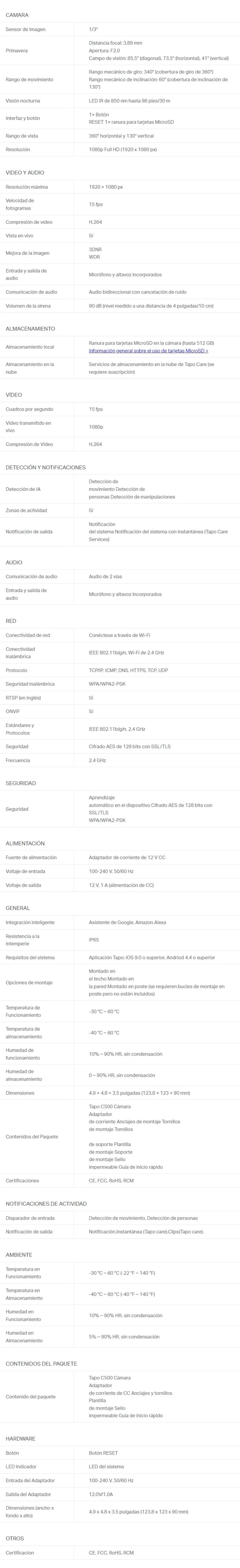 Cámara De Vigilancia IP TP-LINK TAPO C500