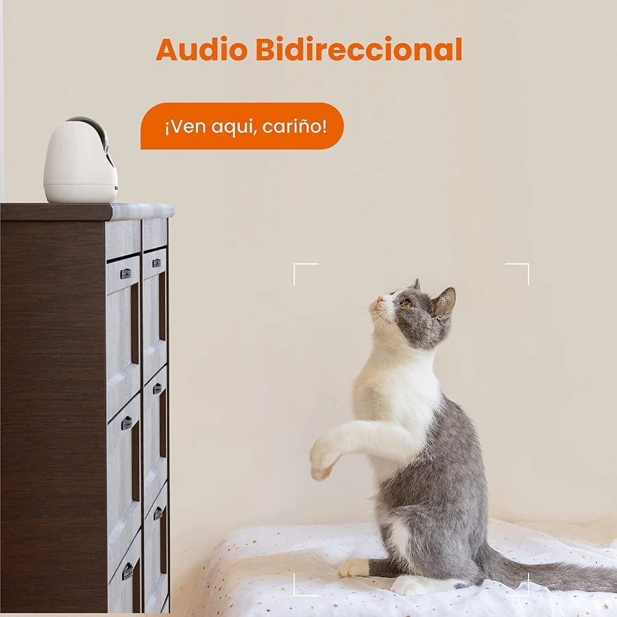 La cámara de seguridad Pan/Tilt Camera-CP3 es una cámara de vigilancia doméstica de alto rendimiento que integra una cobertura visual de 360° con una resolución de 1080p. También cuenta con audio bidireccional full-duplex, detección/seguimiento de movimiento inteligente, funciones de alarma de luz y sonido.