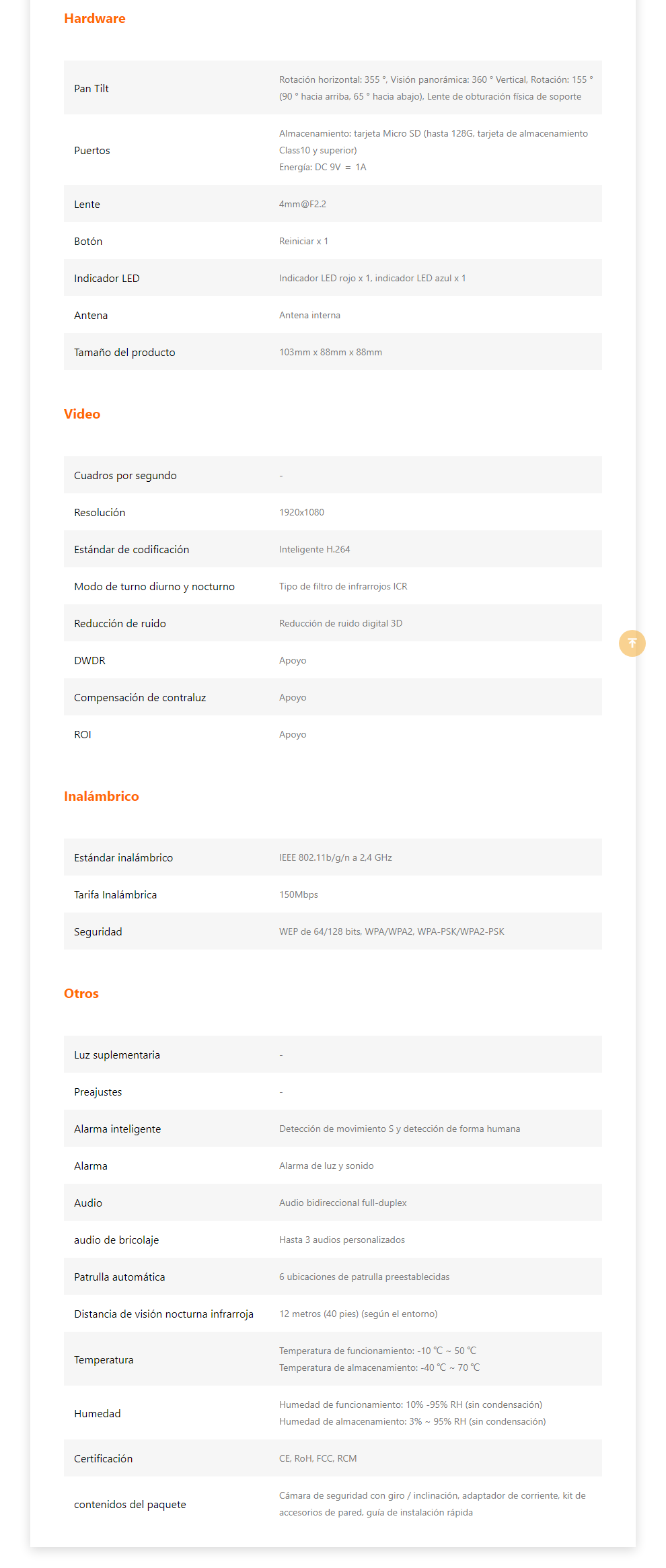 Nota: La precisión de la información, presentación, imágenes, título o especificaciones del producto pueden cambiar sin previo aviso.