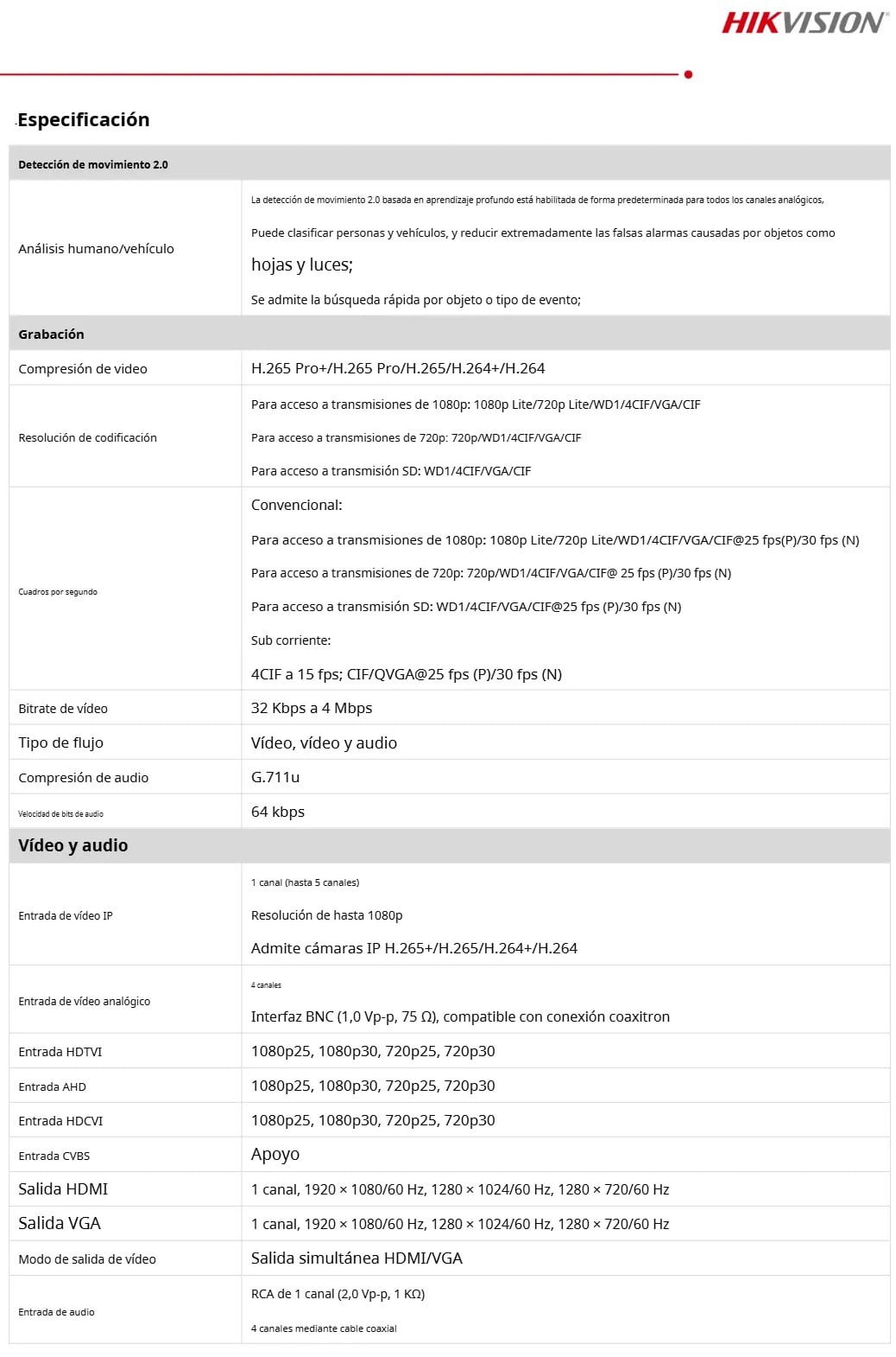 • Entrada de vídeo HDTVI/AHD/CVI/CVBS/IP