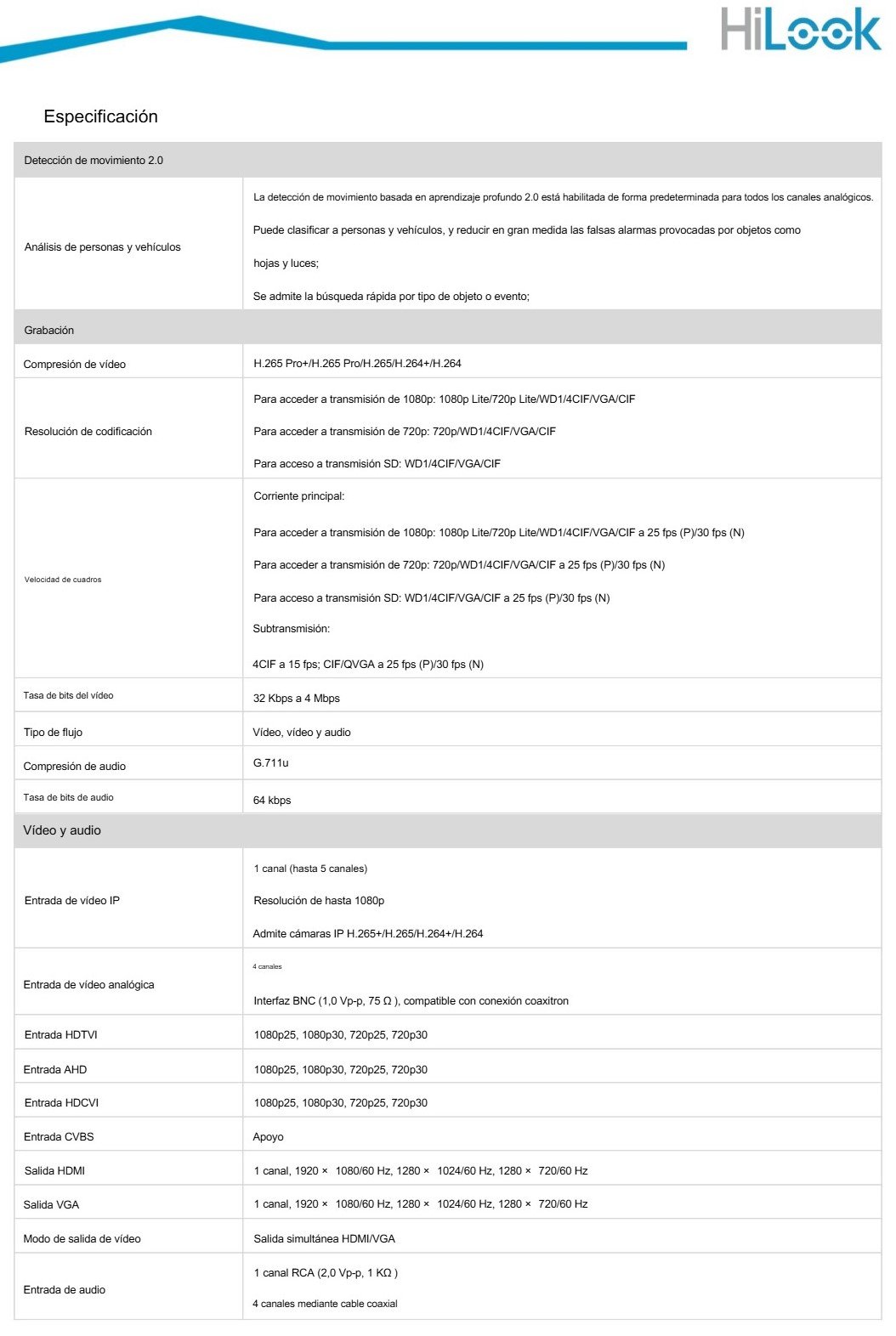 • Soporte de tecnologías: HD-TVI / HD-CVI / AHD / Analógico (CVBS).
