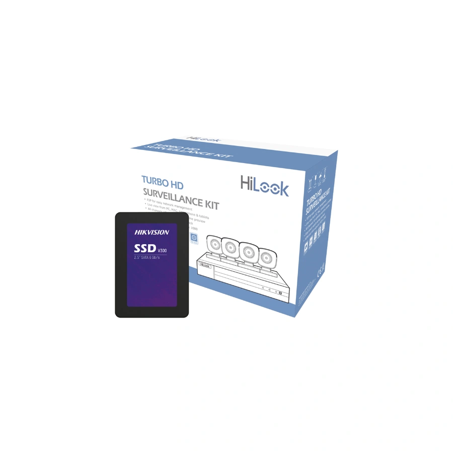 El Kit de Videovigilancia HiLook HL24LQKITS-M(B)/512GB de Hikvision es un sistema completo que incluye una cámara de seguridad CCTV y un DVR-204G-F1 con capacidad de almacenamiento en disco duro SSD de 512 GB.