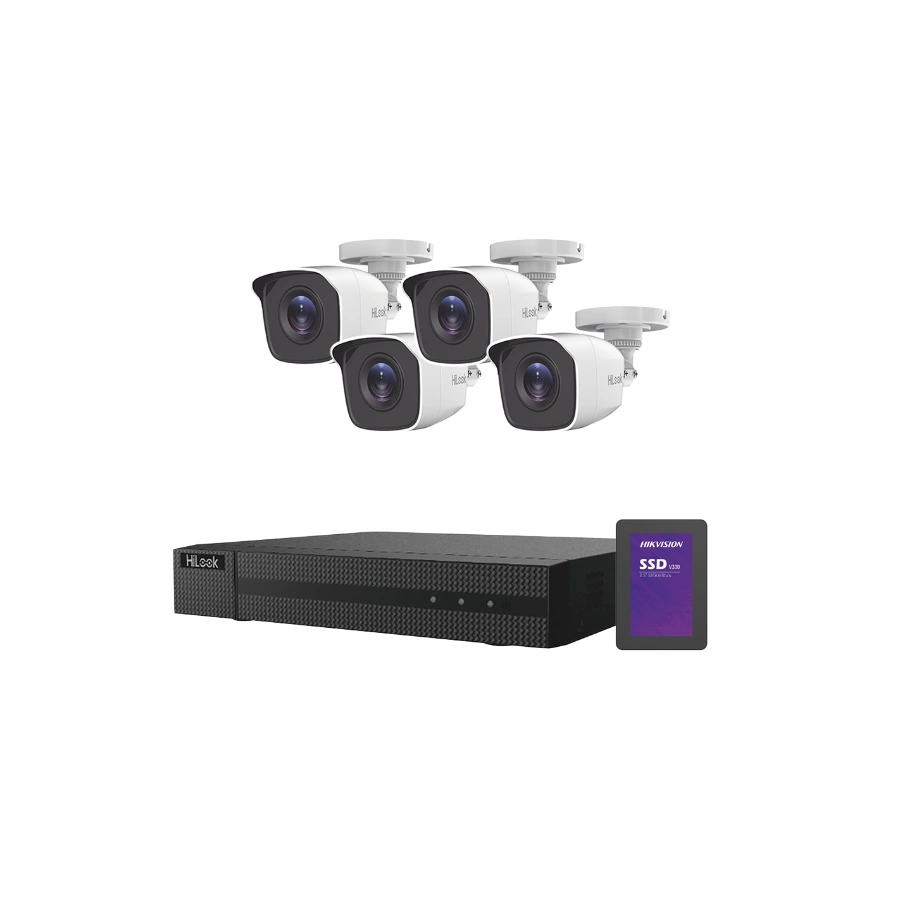 Kit De Videovigilancia HILOOK Turbo HD / 2MP / 1920x1080P DVR 4 Canales / 4 Cámaras Tipo Bala / Protección IP66 / Inc. Fuente De Poder