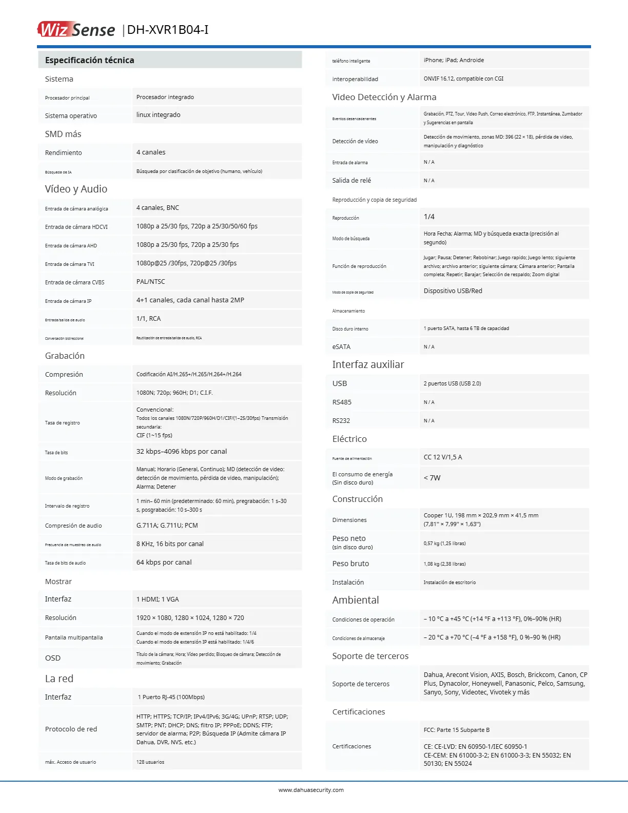 SKU: DH-KIT/XVR1B04-I/4-B1A11N-0280B Categoría: