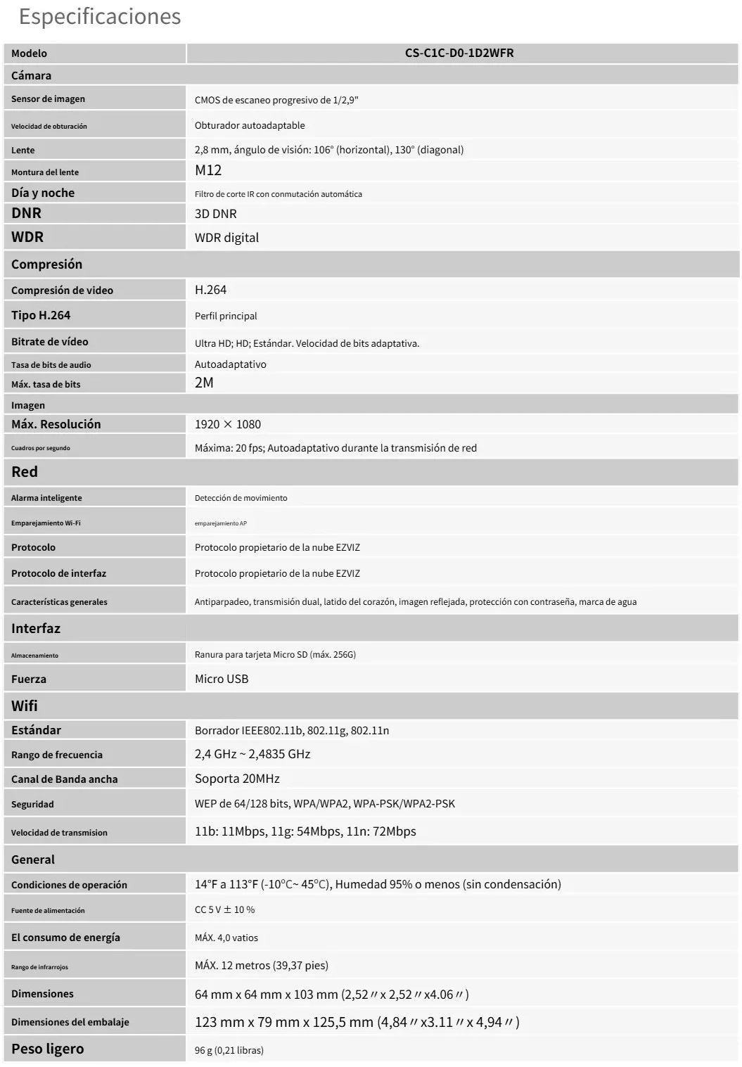 • Resolución: 2 Megapíxel (1920 x 1080).