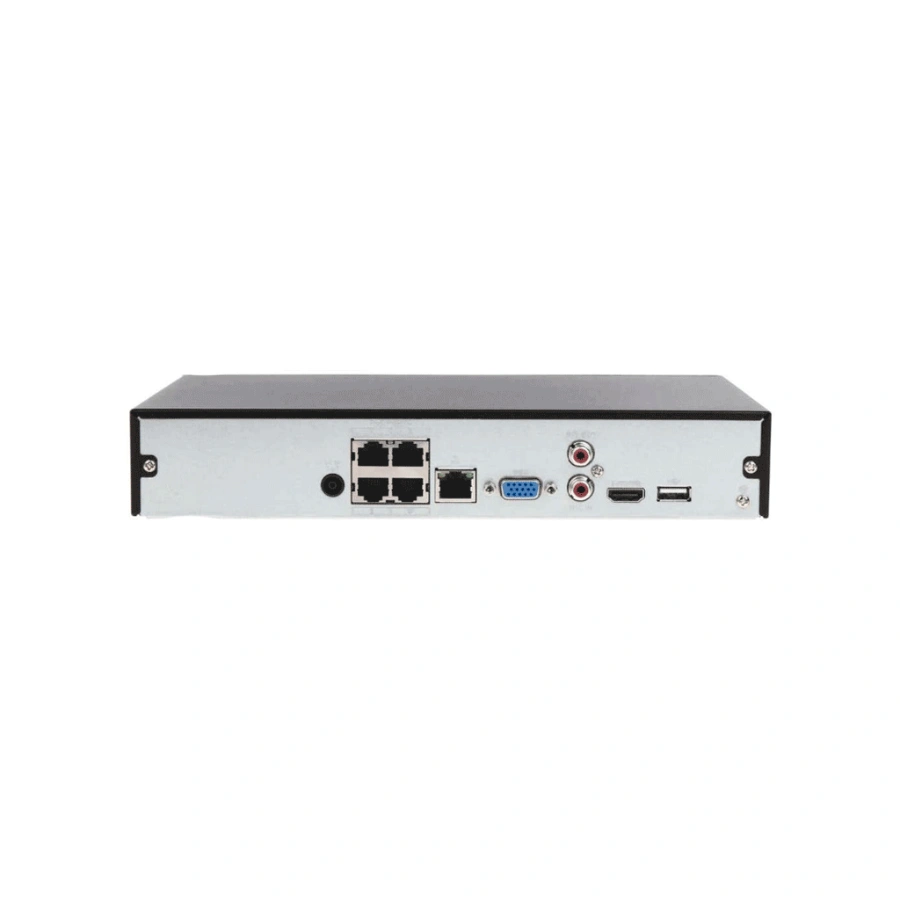 NVR DAHUA NVR1104HS-P-S3/H / 8Mp / Hasta 4K / 4 Canales IP, 4 Puertos PoE / H265+ / X1 Bahía HDD 8TB / Salida De Video HDMI Y VGA / Soporta Cámaras con Protocolo ONVIF Y RTSP / Negro
