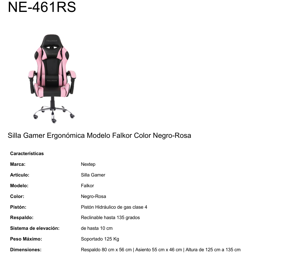 Silla Gamer Ergonómica NEXTEP MODELO FALKOR NE-461RS