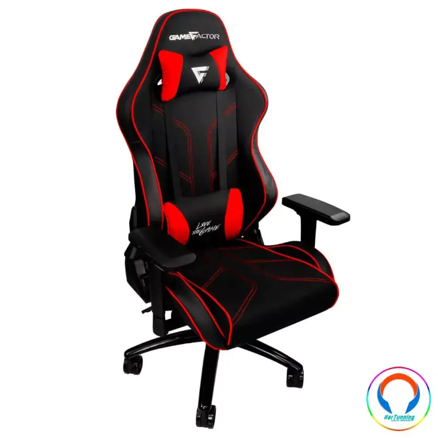 Silla GAMER Game Factor Cgc600 / Respaldo Reclinable / Descansa Brazos Ajustable / Pistón De Gas / Negro Con Rojo